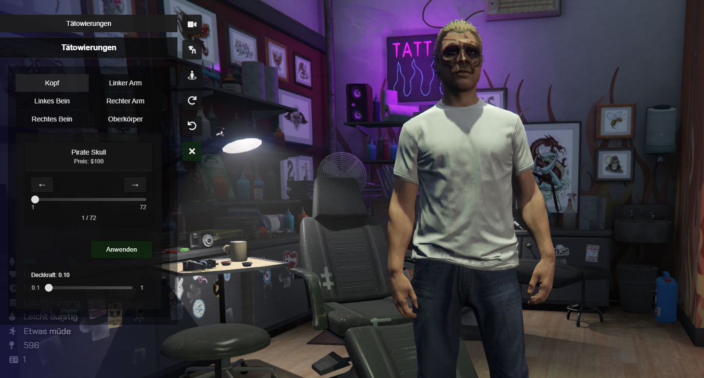 Auch der Tattooshop wurde einer umfassenden Überarbeitung unterzogen. Wir bieten nun die Möglichkeit, Tattoos individuell zu bepreisen, eine reibungslose Auswahl und die einfache Entfernung ungewollter Tattoos. Aktuell wird der Tattooshop nicht von Spielern betrieben, aber wir evaluieren diese Möglichkeit für die Zukunft.