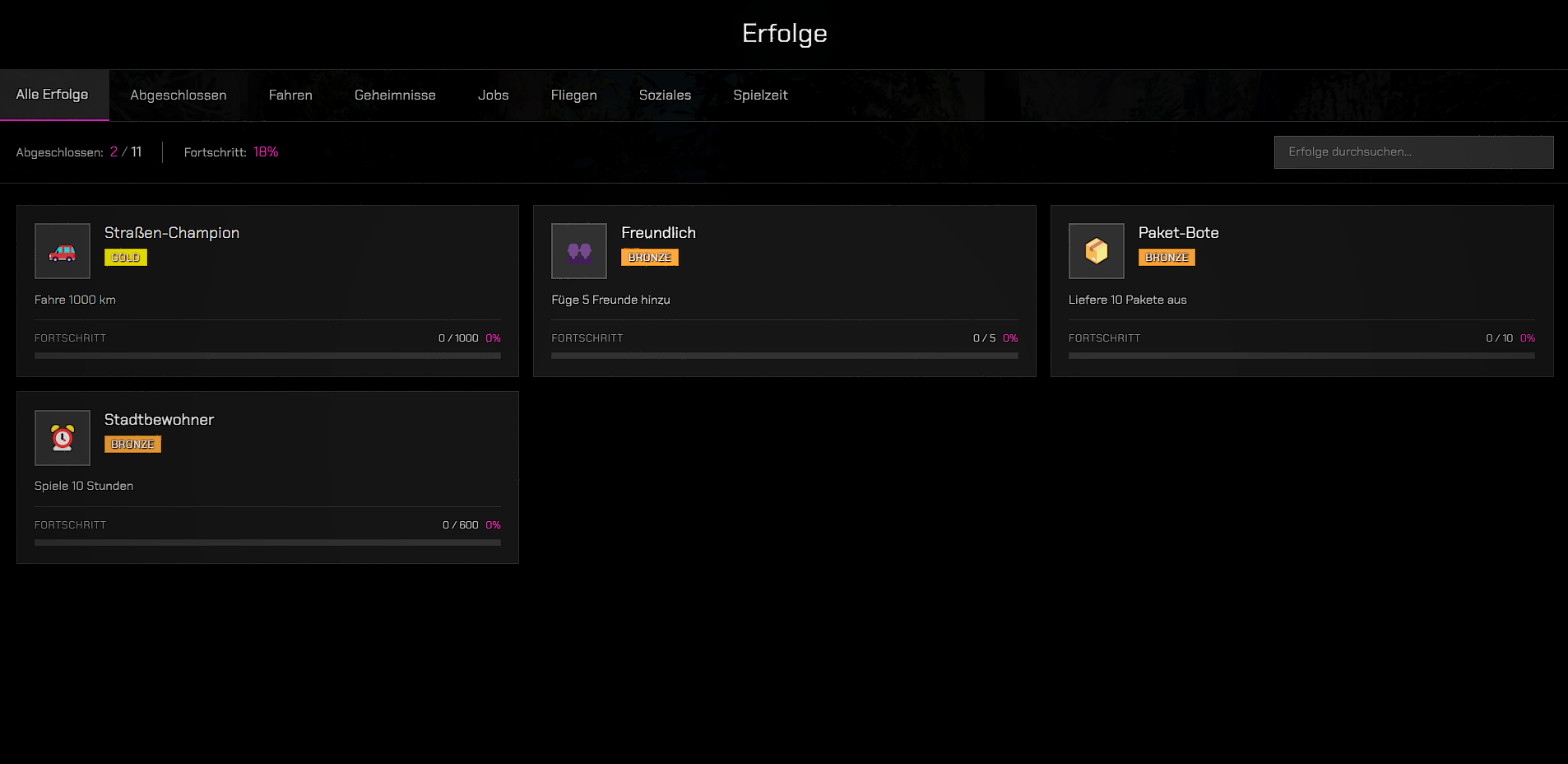 Ihr könnt sehen, wie viel Prozent der Spieler einen bestimmten Erfolg bereits erreicht haben. Zusätzlich gibt es versteckte Erfolge, und jeder Erfolg kann mehrstufig aufgebaut sein – von Bronze über Silber und Gold bis hin zu Platin.