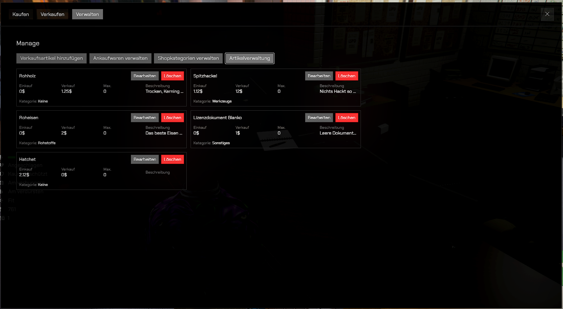 Wie bereits in unseren Leaks gezeigt, haben wir unsere Spielershops in der ersten Version fertiggestellt. Mit diesem System erhalten Unternehmen in Los Santos die Möglichkeit, Waren zu verkaufen oder anzukaufen.