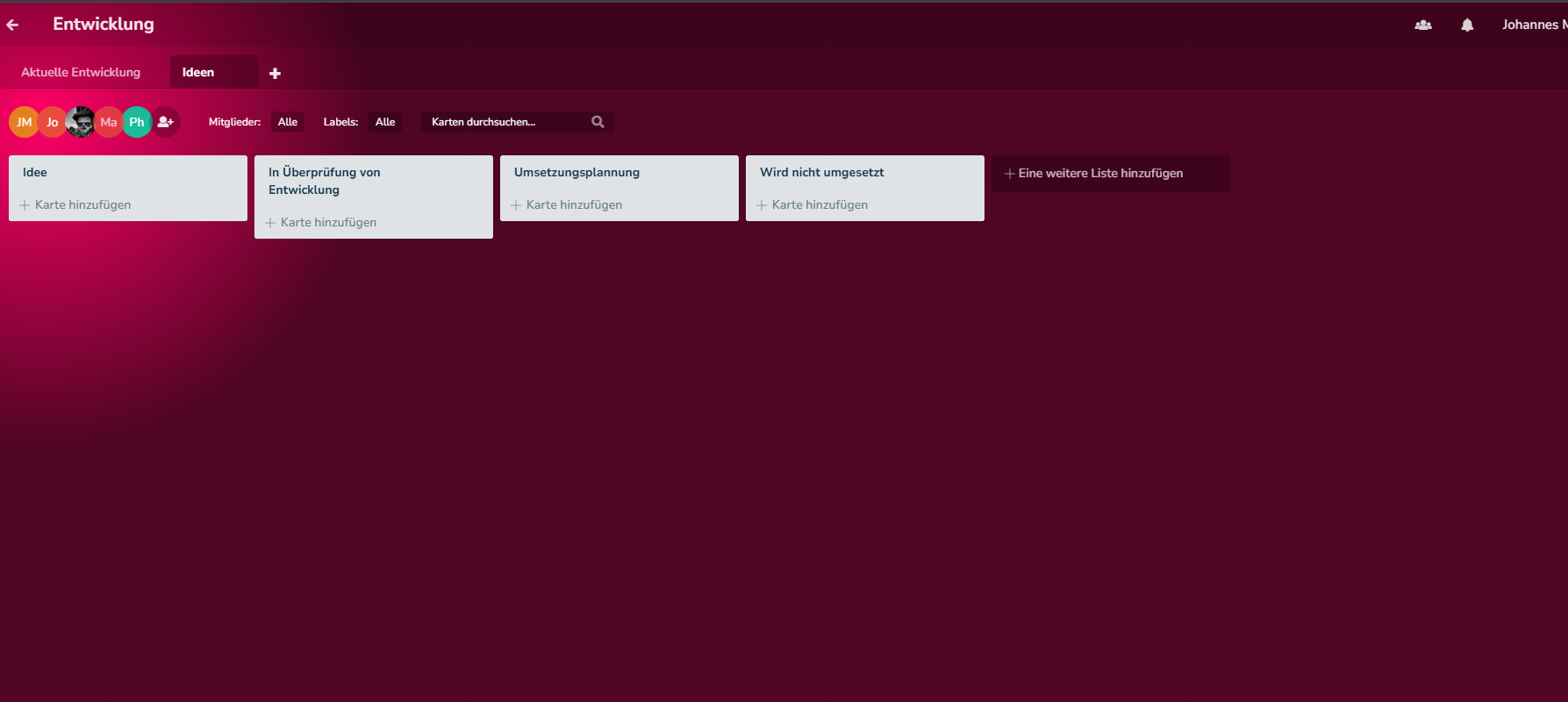 Trello wird ab 11 Personen richtig teuer, weshalb wir nach einer kostenlosen Alternative gesucht haben und auf Planka gestoßen sind. Kurzerhand haben wir einen Postgres-Server aufgesetzt und eine Planka-Instanz in unserer Docker-Serverlandschaft erstellt.