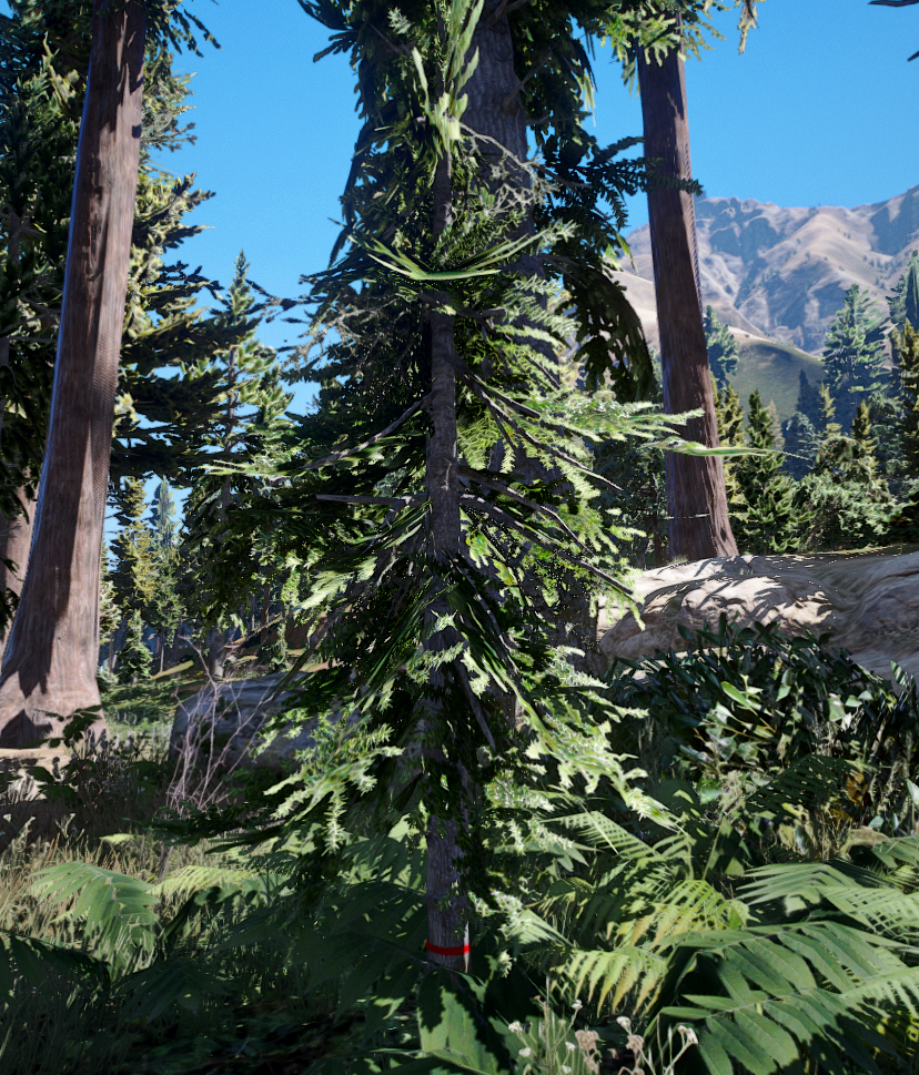 Für das Holzfällersystem haben wir von unserem MLO- und Prop-Creator einen speziell bearbeiteten Baum erhalten. In den vordefinierten Wäldern können Spieler an markierten Bäumen ihre Axt ansetzen und Holz sammeln.